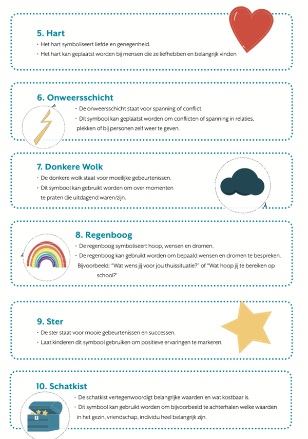 Deze set bestaat uit een informatiebrief met daarbij uitprintbare pictogrammen die belangrijke personen, relaties en gebeurtenissen in het leven van het kind vertegenwoordigen. Met behulp van deze set kunnen kinderen hun familie en sociale netwerk visueel representeren en verkennen.